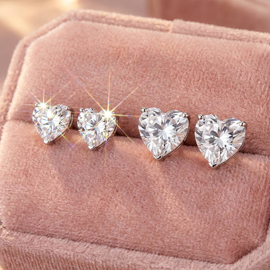 Discover our beautiful heart-shaped earrings, available in both 5mm and 7mm sizes. Perfect for any occasion, these dazzling studs are designed to catch the light and add a subtle sparkle to your style. The 5mm earrings feature an eye-catching shimmer, while the 7mm option offers a classic, elegant shine—making it easy to choose the pair that suits your mood.